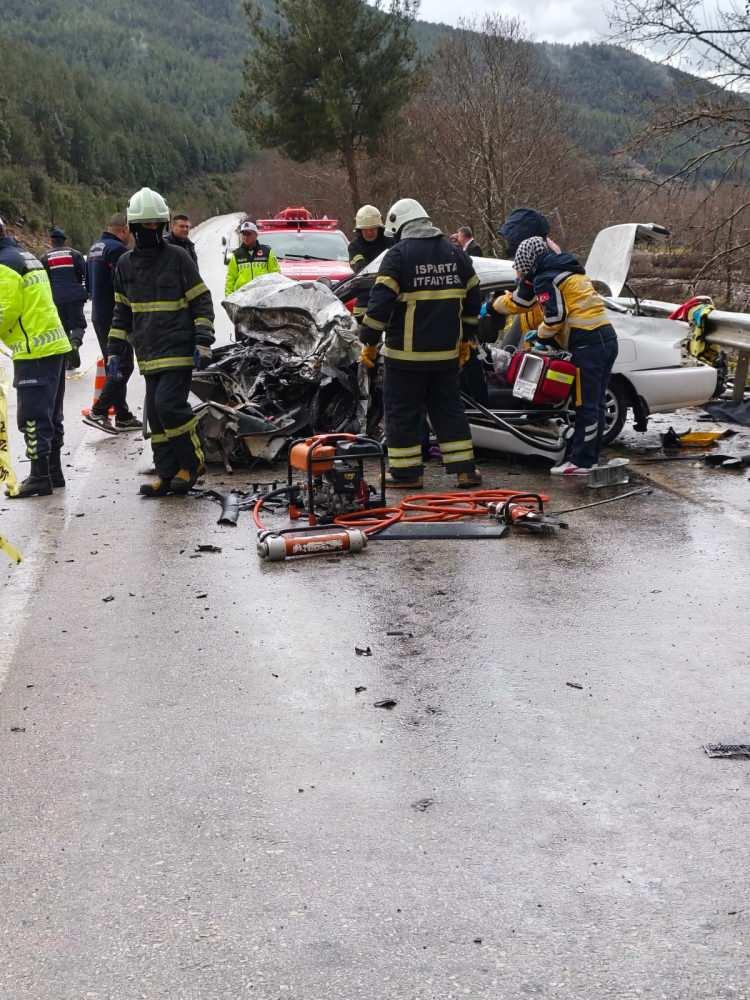 Kaza, dün saat 15.30 sıralarında Isparta-Antalya kara yolu, Ağlasun Sakarlar mevkiinde meydana geldi. Mustafa Kılıç yönetimindeki 15 AEA 416 plakalı otomobil ile A.E.B. idaresindeki 32 ABE 850 plakalı otomobil çarpıştı.