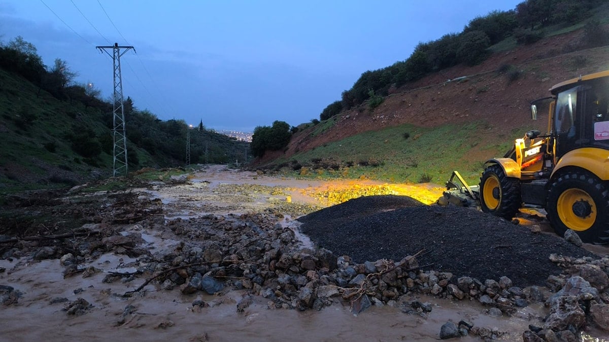 Nurdağı Belediyesi ekipleri, 25 iş makinesiyle müdahalede bulunarak suların tahliyesi için çalışmalarını sürdürüyor.