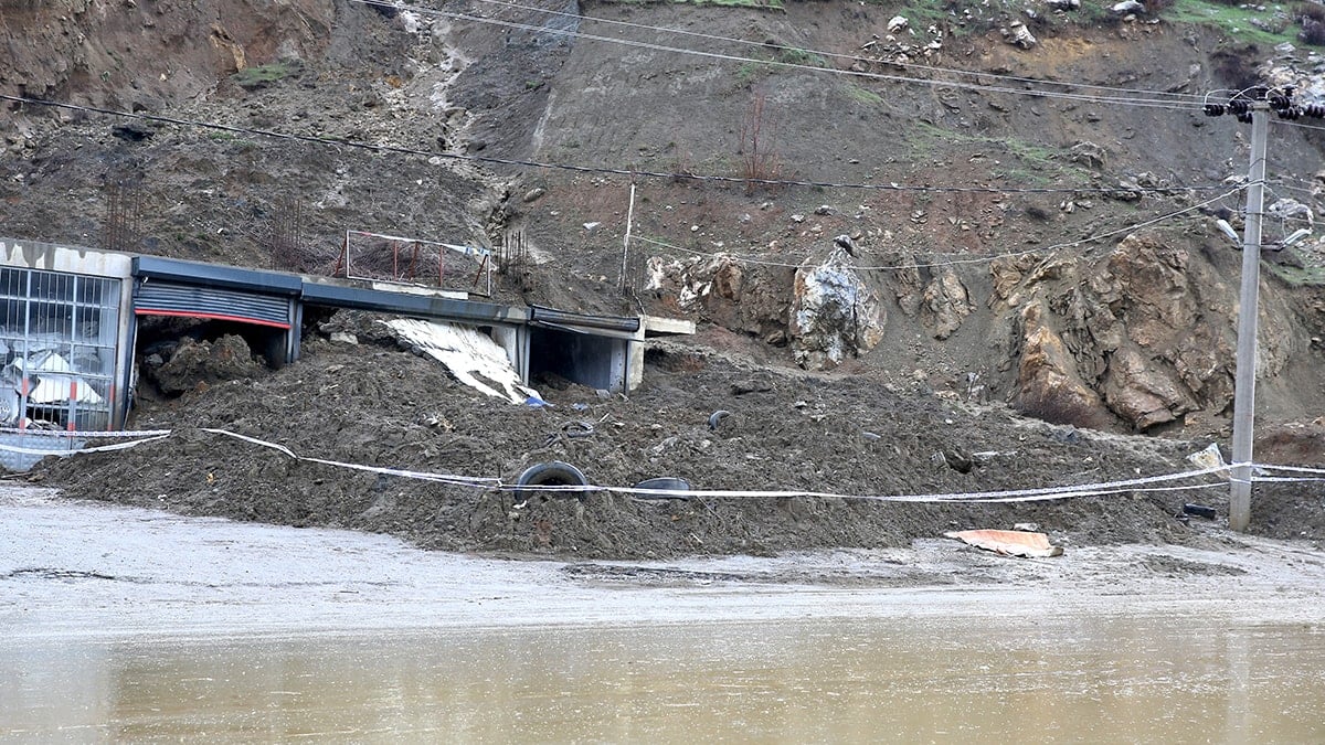 Kentte sabah saatlerinden bu yana etkili olan sağanak ve karla karışık yağmur heyelana neden oldu.