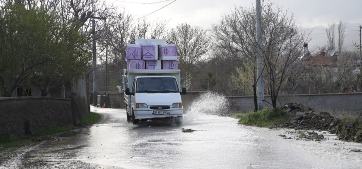 Yağış sonrası yollarda ve tarım arazilerinde su birikintileri oluştu.