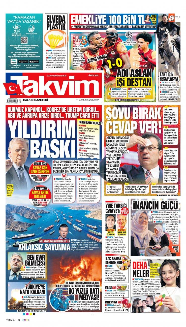 11 Mart Çarşamba günü atılan gazete manşetlerini siz değerli okurlarımız için derledik...