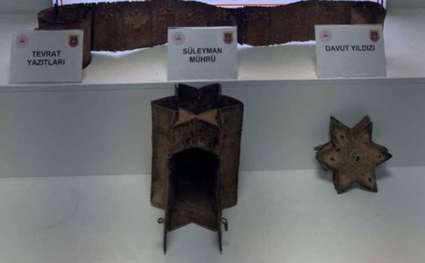 12. YÜZYILA AİT SÜLEYMAN MÜHÜRLÜ YAZITDHA'daki habere göre operasyon düzenleyen ekipler, 12’nci yüzyıla ait olduğu belirtilen üzerinde Süleyman mührü (Davut Yıldızı) ve Tevrat içeren yaklaşık 4 metre uzunluğunda rulo şeklinde yazıt ele geçirdi.