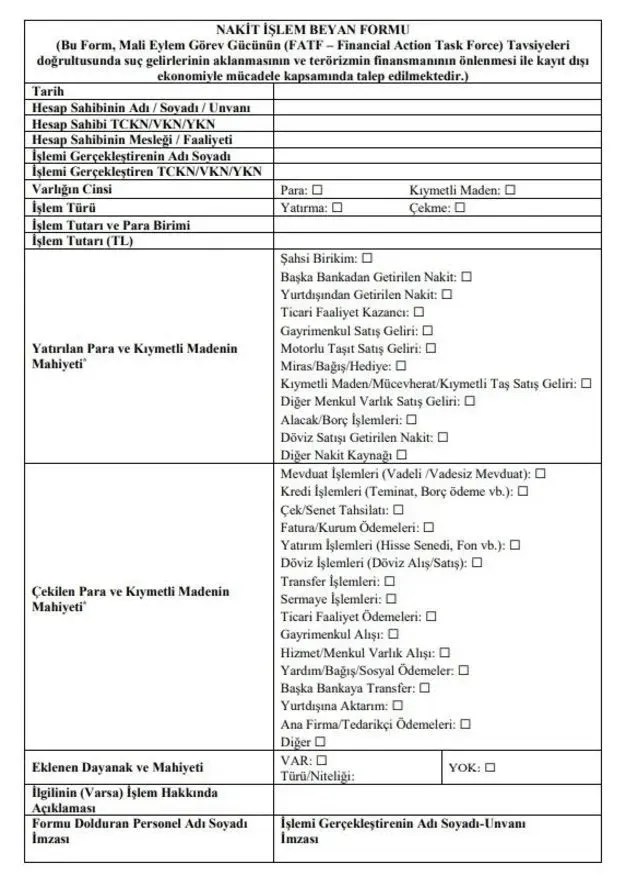 20 milyon liranın üzerinde yapılacak transferlerde ise söz konusu paranın kaynağına dair ek bilgi ve belge temin edilmesi şartı aranacak. Müşterinin yaptığı açıklamanın onaylanmaması durumunda para transferine izin verilmeyecek.