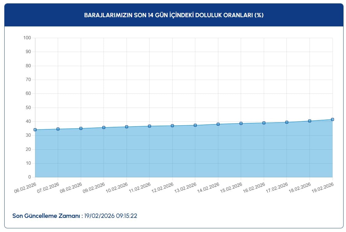 19 ŞUBAT 2026 ŞEHİRLERE GÖRE BARAJ DOLULUK ORANLARI