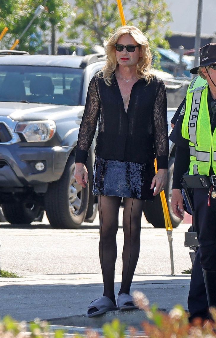 1990'lı yıllarda 'İkiz Tepeler' ve 'The X-Files' dizileriyle hafızalara kazınan David Duchovny, yakında vizyona girecek filminin çekiminde görüntülendi. Set fotoğraflarında pullu etek, sarı peruk ve koyu bir makyajla Duchovny, tanınmaz haldeydi.