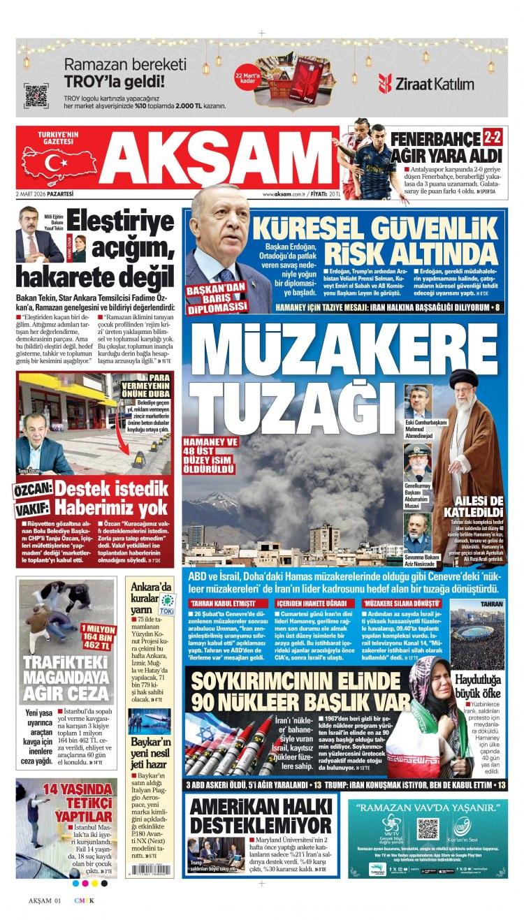 2 Mart Pazartesi gazete manşetleri Kıyamet senaryosu, ateş 10 ülkeyi sardı!