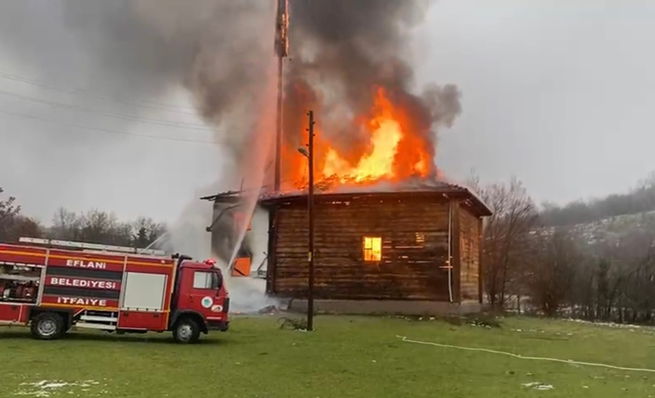 Karabük'ün Eflani ilçesinde 450 yıl önce 2'nci Selim döneminde inşa edilen Elekler Camisi çıkan yangında küle döndü.