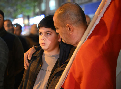 Vatandaşlar, ellerinde Türk bayraklarıyla Adli Tıp Kurumu önünde toplandı.