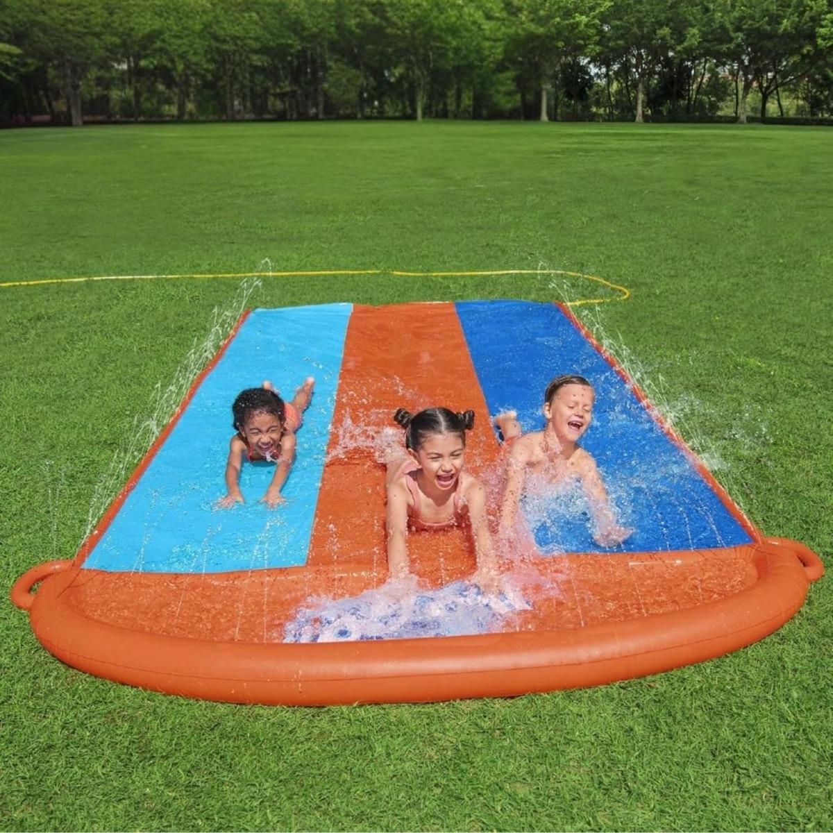 “4 yaş çocukla çok rahat oynadık. Ürün sağlam, masadan düşürdük ama başına bir şey gelmedi.” “Ürün çok güzel, 3 yaşındaki oğlum için aldım. İlgileneceği bir oyuncak. Zar üzerinde sayı olmadığı daha önceki yorumlarda söylenmişti. Evet zarda sayı yok ama yapışması için stiker poşetin içinde mevcut.” Ürünü İncele 7. Bestway Üçlü Su Kaydırağı H20GO Dahili Yağmurlamalı