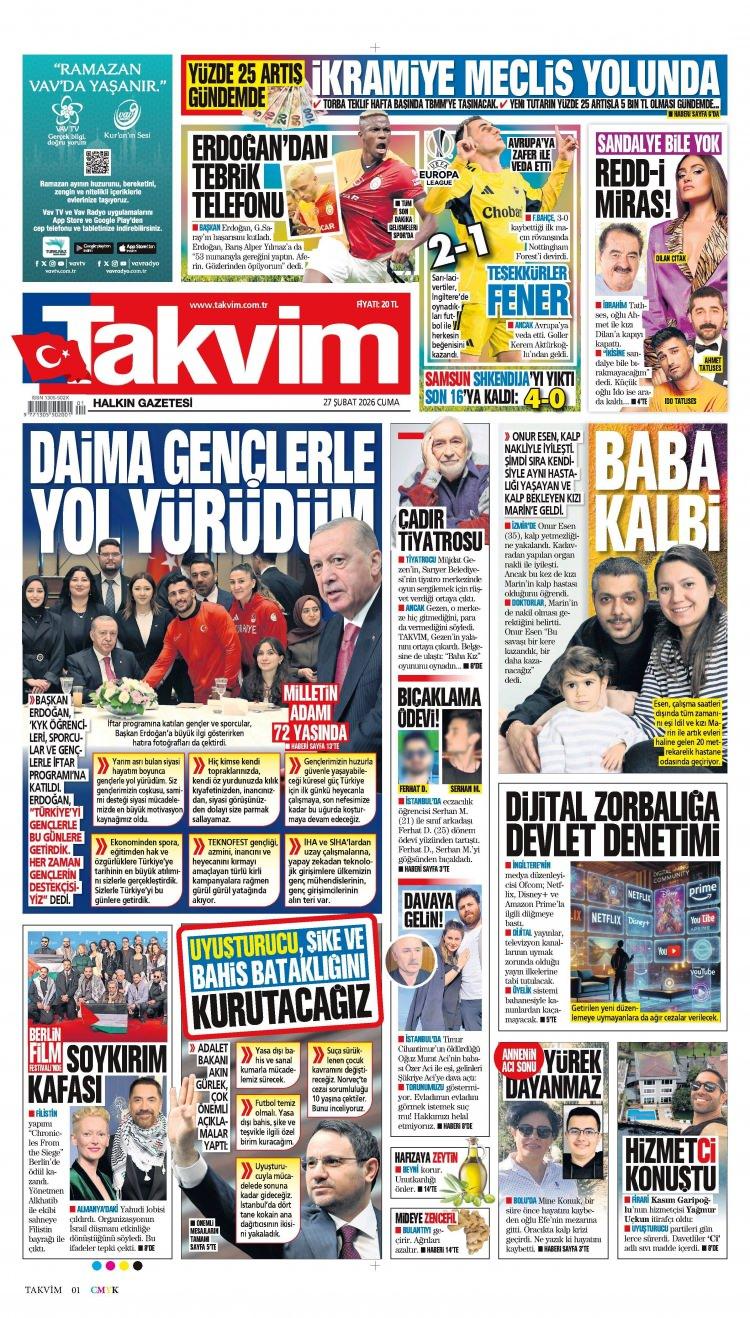 27 Şubat Cuma günü atılan gazete manşetlerini siz değerli okurlarımız için derledik...
