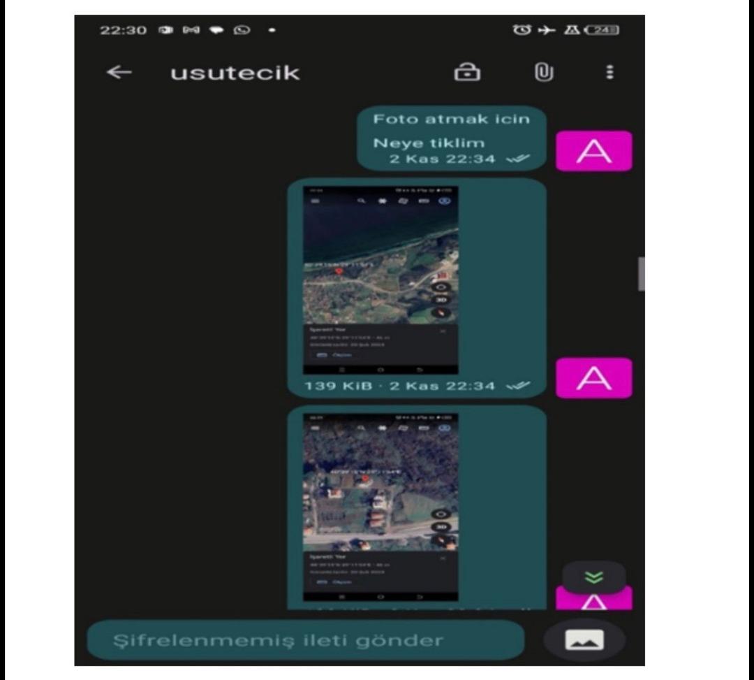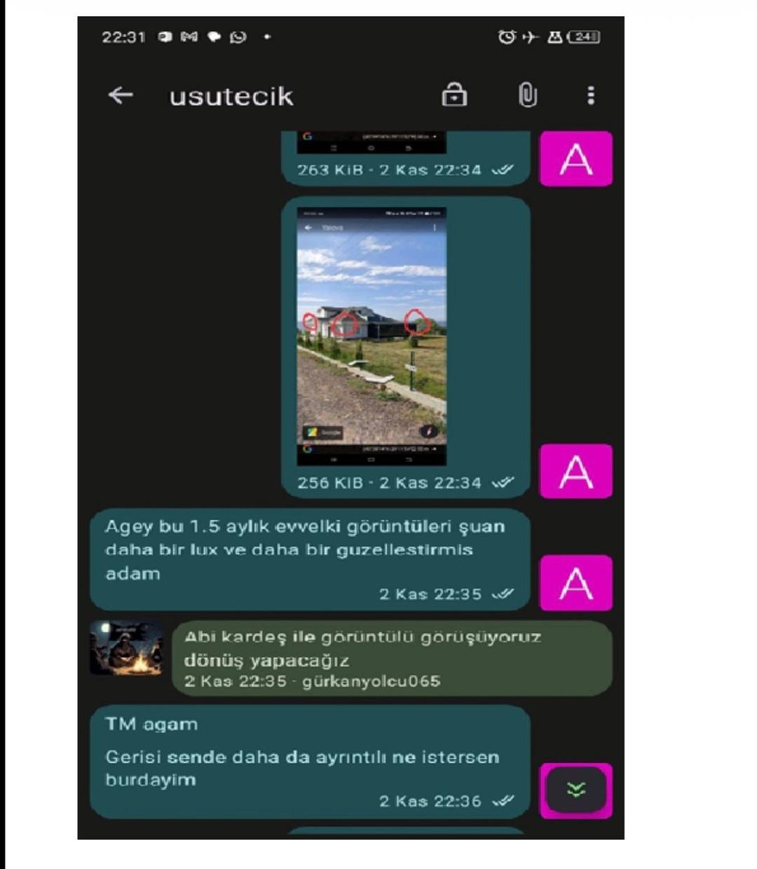 Mesajla haberleştiği kişiye evin fotoğraflarını atan B.K.’nin, güvenlik kameralarını kırmızı daire içine alarak işaretlediği görüldü. B.K.'nin bilgisayardan indirdiği eve ait fotoğrafla yetinmediğini, ayrıca bölgede keşif de yaptığını değerlendirilirken, ‘Usutecik’ kod adlı örgüt üyesine, eve ait fotoğrafta bir bölümü işaretleyerek, “Bu noktadan ormanlık alandan arkadan gelip o noktadan rahat görebileceğimiz bir ortamı var. Bu alandan araçtan inilir orada ormanlık alanda bir merdiven yapılır, sonra hava iyice karardığında evin arkasına gidilip gözlem yapılır. Akşam uyku zamanlarında da bummm” şeklinde mesaj attığı görüldü. B.K.’nin farklı bir zamanda da ‘Usutecik’ kod adlı örgüt üyesine, “Bana susturuculu bir uygun yollu dönme bul kardaşım” şeklinde mesaj attığı ve suikastta kullanacağı silahı temin etme noktasında yardım istediği belirlendi.