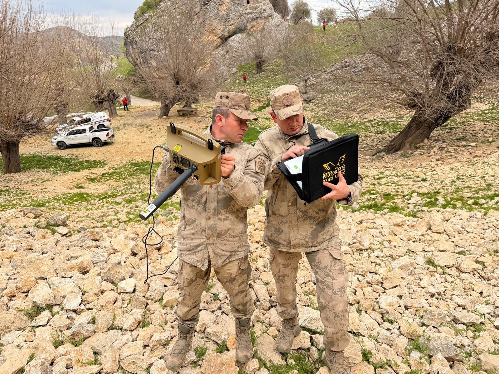 Günün erken saatlerinde araziye çıkan ekiplerin bir bölümü, yer altı görüntüleme cihazlarıyla tarama gerçekleştiriyor. Cihazların gönderdiği kızılötesi sinyaller sayesinde yer altının üç boyutlu görüntüsü elde edilerek şüpheli alanlar detaylı şekilde inceleniyor. Diğer ekipler ise bölgedeki mağaralara halatlarla girip, el feneri ve tepe lambalarıyla iç kısımlarda arama yapıyor. Zorlu arazi şartlarına rağmen çalışmaların titizlikle sürdürüldüğü arama faaliyetlerinde, ‘insan kalıntılarını tespit edebilen’ olarak da bilinen kadavra köpekleri de görev yapıyor. Labrador ırkından seçilen bu köpeklerin, gelişmiş koku alma yetenekleri ve özel eğitimleri sayesinde yıllar öncesinden kalmış insan kalıntılarını dahi tespit edebileceği belirtilirken, arama çalışmalarının elde edilecek bulgular doğrultusunda farklı noktalarda da sürdürülebileceği, çalışmaların 1 ay sürebileceği öğrenildi.