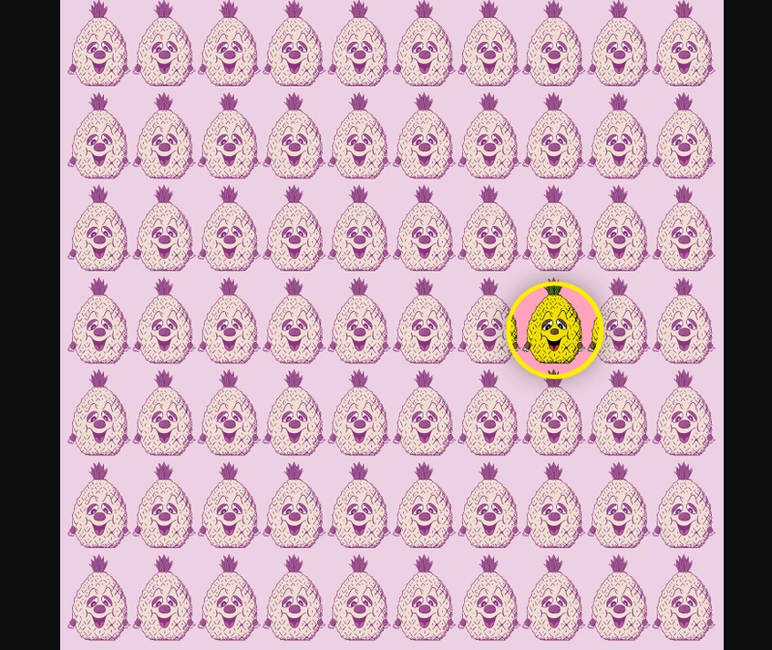 Birbirinin tıpatıp aynısı olan ananaslardan biri diğerlerinden farklı. Sizlerden istenen ise farklı ananası 6 saniyede bulmanız. Sadece bir dahi bu görseldeki farklı ananası 6 saniyede buluyor.