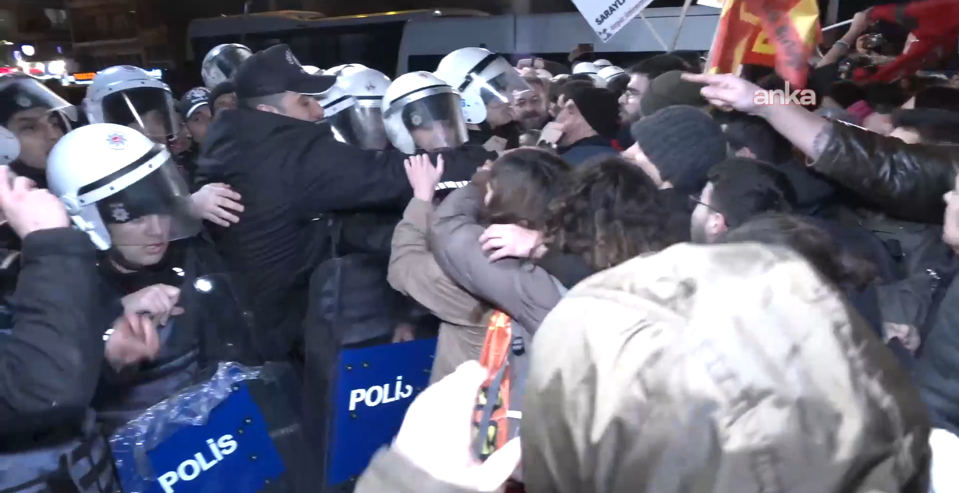 Önlerinin kesilmesine tepki gösteren kitle ile polis ekipleri arasında arbede çıktı. Polis müdahalesi sırasında Halkevleri Bölge Temsilcisi Serdar Kibar'ın gözaltına alındığı bildirildi.
