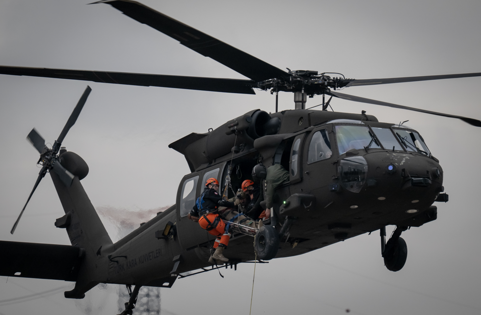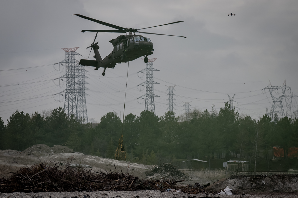 Helikopterlerle alanda havadan keşif yapıldı. Başka bir helikopterle bölgeye yük bırakıldı.