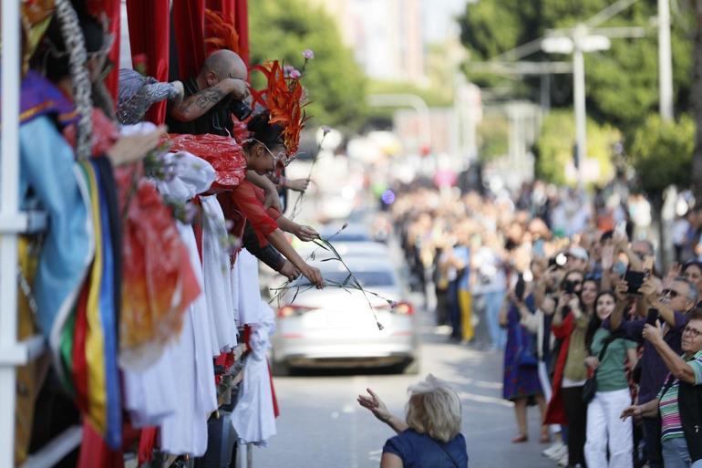 Ünlü sanatçıların vatandaşları selamladığı korteje, Antalya Büyükşehir Belediyesi Başkan Vekili Büşra Özdemir, onur ödülü sahibi sinema sanatçıları Serap Aksoy ve Settar Tanrıöğen ile Yüksel Arıcı, Mahmut Cevher, Kaan Çakır, Mehmet Kurtuluş, Korhan Yurtsever, Ezel Akay, Yosi Mizrahi, Elvin Köse katıldı. Büyükşehir Belediyesi'nin bando takımı ve dans ve gösteri ekiplerinin da eşik ettiği kortejde sanatçılar vatandaşlara çiçek attı.