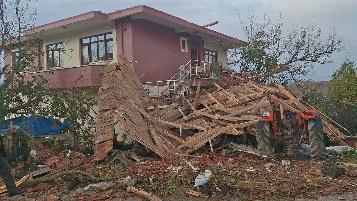 Ankara'nın Beypazarı ilçesinde etkili olan hortum, bazı ev ve ağıllarda hasara yol açtı.