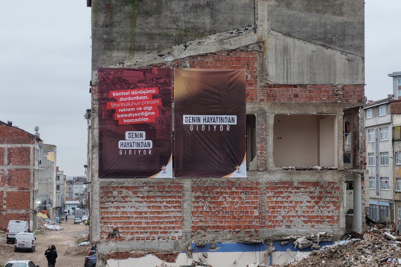 "İBB yönetimi tarafından yıkımı dahi becerilmeyen bir durumda"Burada arkamızda içerisi boşaltılmış, tamamen elektriği, suyu, doğalgazı kesilmiş, yıkılmayı bekleyen ama beceriksiz İBB yönetimi tarafından yıkımı dahi becerilemeyen bir durumda. Bakın bu metruk binalarda her türlü suç ve her türlü kötü fiil işlenmeye devam etmekte.