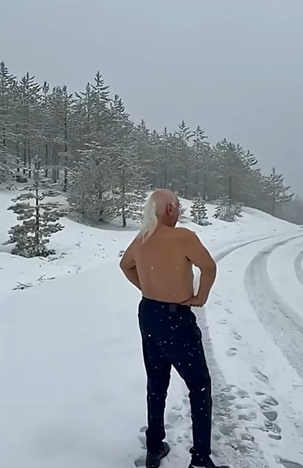 Daha sonra Gediz depremlerinin yükseldiği Murat Dağı'na çıkan Üşümezsoy yoğun kar yağışına aldırış etmeden yarı çıplak gezdi.