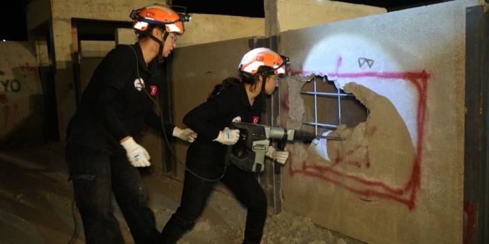 Kadınlardan oluşun arama kurtarma ekipleri tatbikata başladı