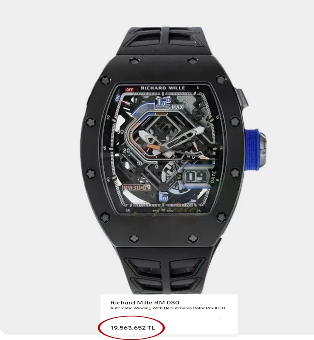 Hatipoğlu’nun son kullandığı saat Richard Mille RM 30 modeli ve dünyanın en lüks saatlerinden biri. Hatipoğlu, 9.2 milyonluk saati ortaya çıkınca “Helal kazanılmış malı saklamaya gerek yok” dedi.