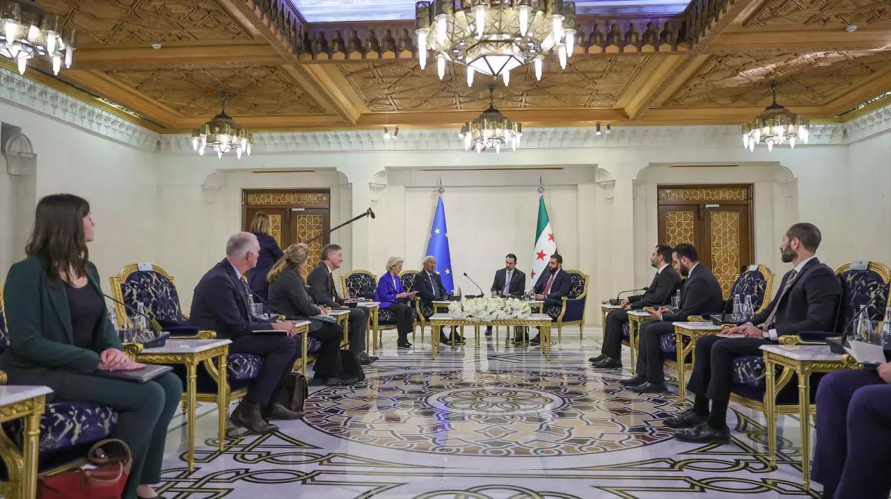 AB Komisyonundan yapılan açıklamaya göre, von der Leyen, AB Konseyi Başkanı Antonio Costa'yla Şam'a düzenlediği ziyarette Suriye Cumhurbaşkanı Ahmed Şara'ya hitaben şu ifadeleri kullandı:
