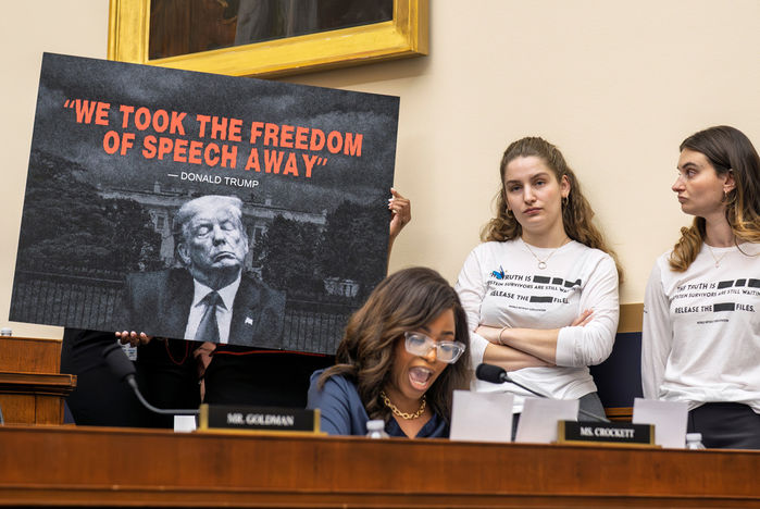 Oturumda, Cumhuriyetçi Kongre üyesi Thomas Massie ile Bondi arasında, Adalet Bakanlığının mağdurların kimliklerini yanlışlıkla ifşa etmesi ve iddia edilen bir suç ortağının kimliğinin gizlenmesi konularında tartışma yaşandı.