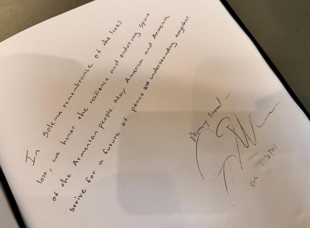 Vance, ziyarete ilişkin olarak sosyal medya hesabından yayınlanan paylaşımda, 1915 olaylarına ilişkin olarak Ermenistan hükümetinin siyasi terminolojisine başvurarak, sözde "Ermeni soykırımı" ifadesini kullandı. Başkan Yardımcısı Vance, kısa bir süre sonra söz konusu paylaşımı silerek yerine Basın Sözcüsü Taylor Van Kirk'in ziyarete ilişkin olarak paylaştığı, içinde "soykırım" ifadesine yer verilmeyen bir gönderiyi yeniden paylaştı.