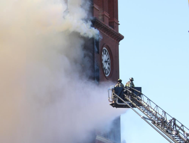 ABD de 134 yıllık tarihi binada yangın! Saat kulesi çöktü