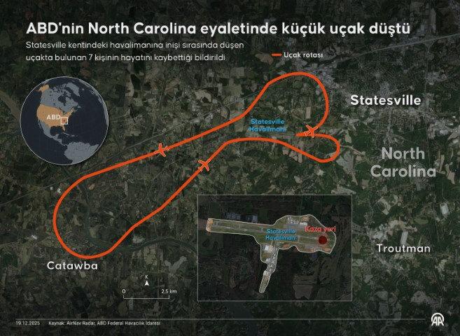 ABD Federal Havacılık İdaresi, ‘Cessna 550’ tipi özel jetin North Carolina eyaletinin Statesville kentindeki havalimanına inişi sırasında düştüğünü duyurdu. Kaza sonrasında çıkan yangın sebebiyle kesin yolcu listesinin açıklanamadığı belirtilirken, jetteki herkesin hayatını kaybettiği bildirildi.