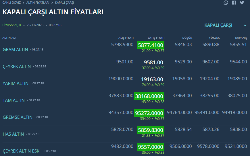 Kapalıçarşı altın fiyatları ile resmi altın fiyatları arasındaki fark devam ediyor. Gram atın Kapalıçarşı'da 5 bin 877 liradan satılıyor. İşte Kapalıçarşı altın fiyatları...