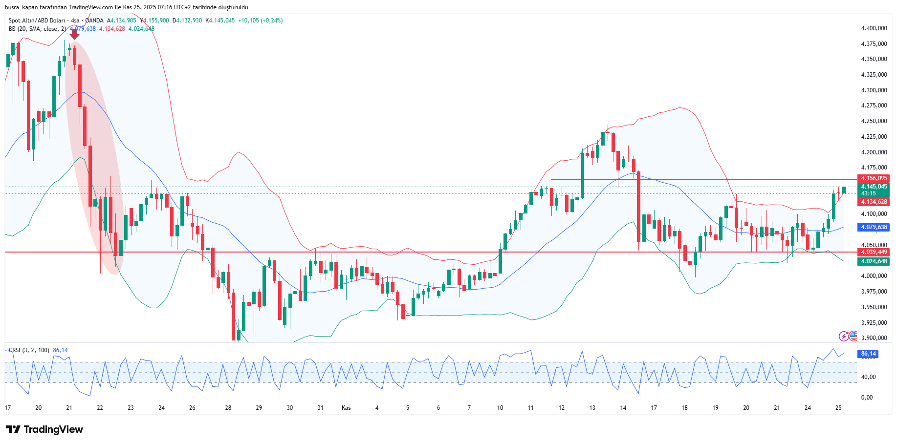 ONS ALTINDA YÖN YUKARIOns altın ABD'den gelen haberler sonrası yükselişe geçti. Ons altın gece 4 bin 156 dolar seviyesine çıkarak 14 Kasım’dan bu yana en yüksek rakamı gördü. Bugün sabah seansında 08.14'te altının onsu 4 bin 145 dolarda bulunuyor.