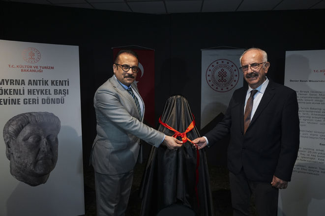 ABD'nin Denver kentindeki Denver Art Müzesi koleksiyonunda bulunan ve Smyrna Antik Kenti kökenli olduğu bilimsel verilerle teyit edilen mermer heykel başı İzmir Arkeoloji Müzesi'nde yerini aldı.