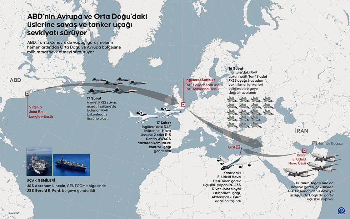 ABD, Orta Doğu'da 2003 yılındaki Irak işgalinden bu yana görülen en büyük askeri yığınağı gerçekleştiriyor. Washington yönetiminin Tahran üzerindeki "maksimum baskı" politikasını diplomatik bir ültimatomla birleştirdiği bu süreçte, bölgeye sevk edilen stratejik unsurların nicelik ve niteliği olası bir çatışmanın kapsamına dair kritik ipuçları veriyor.