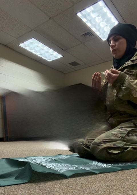 ABD askeri üniformasıyla namaz kıldığı görüntüleri paylaşan Arya, "Türküm, tesettürlüyüm" notunu düştü. Genç kadına sosyal medyada çok sayıda tepki geldi.