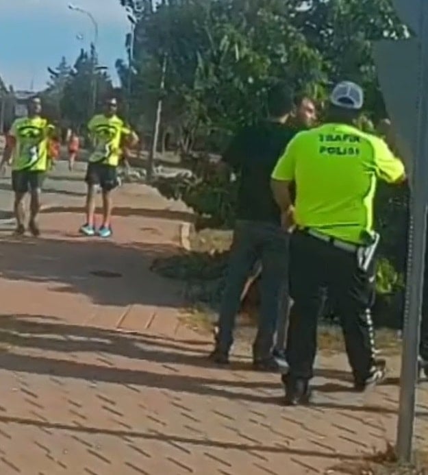 Sürücülerden bazıları bu sırada koşucularla tartışmaya girerken, bir kişi koşucuları tartaklayıp hakaret etti. Araya çevredeki vatandaşlar girerek gerginliği sonlandırdı.