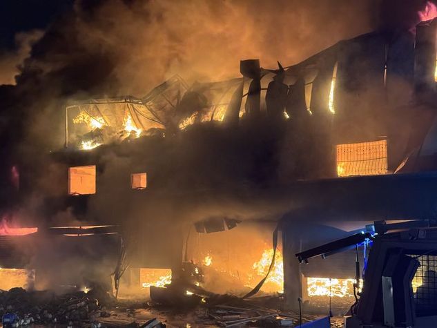 Bitişik iş yerlerine de sıçrayan yangını söndürme çalışmaları devam ediyor.