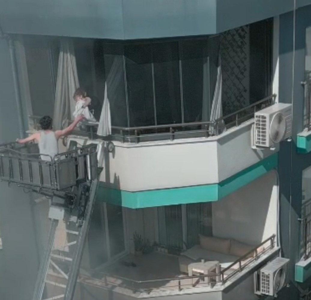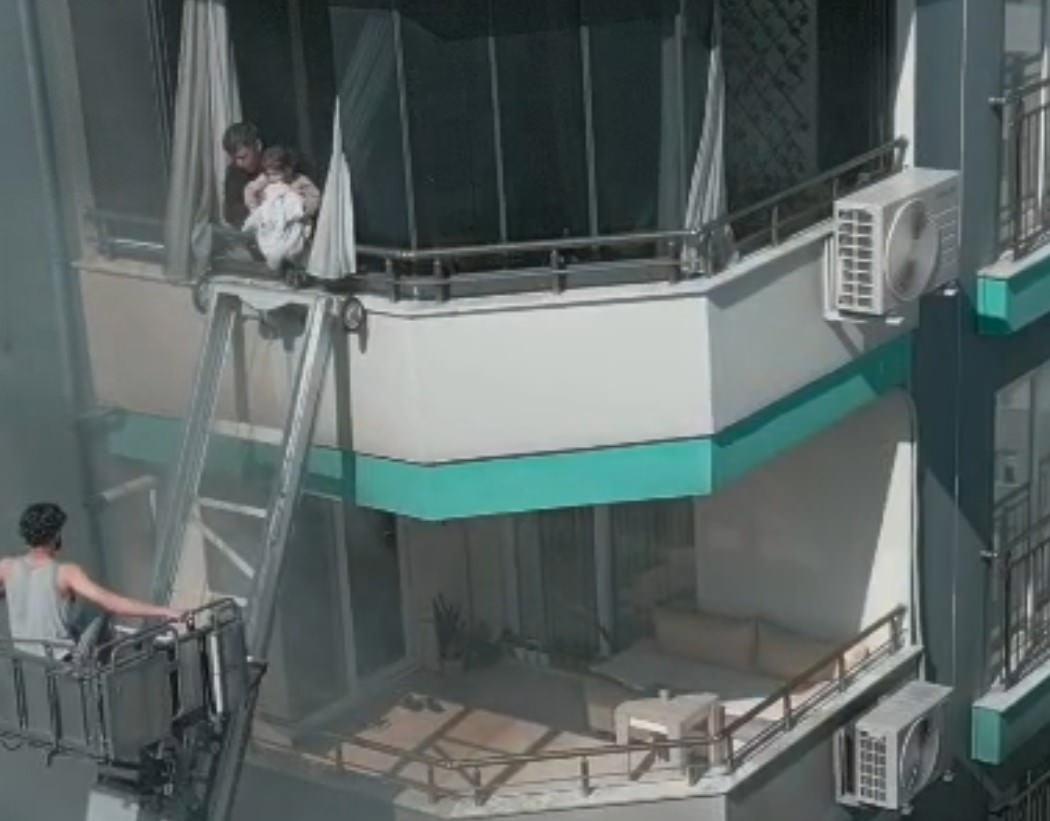 O sırada yakındaki bir inşaatta iskele ustası olarak çalışan Muhammet Figen, bebeği görünce hiç düşünmeden yük asansörüne binip 13'üncü kata çıktı.