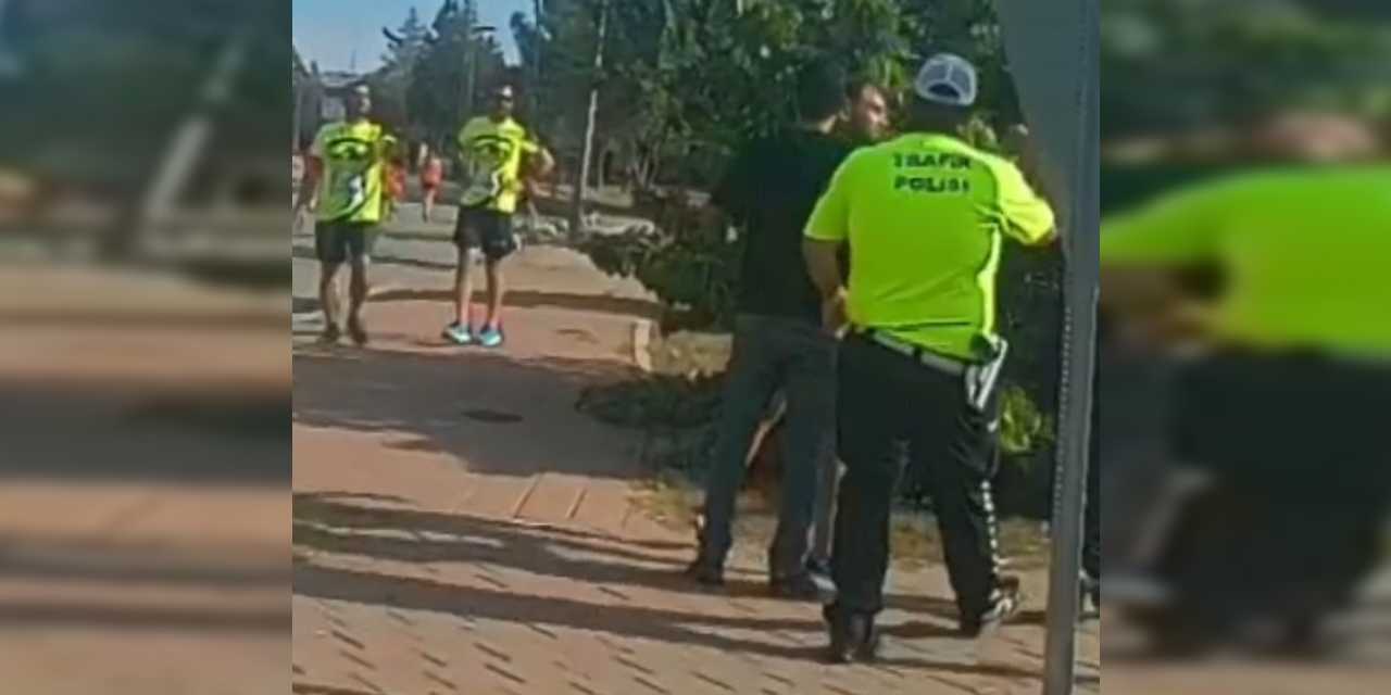 KOŞUCUYU KENARA ÇEKİP TARTAKLADIBulvara çıkan yolda bekleyen araç sürücüleri, koşunun uzun sürdüğünü belirterek polise tepki gösterdi. Sürücülerden bazıları bu sırada koşucularla tartışmaya başladı.