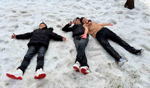Oynamaya gelen çocuklardan Yiğit Aslan Demirci, "Haberlerde dolu yağdığını, kar kütleleri oluştuğunu görünce buraya oynamaya geldik. Çok eğlendik, çok güzel bir görüntü" dedi.