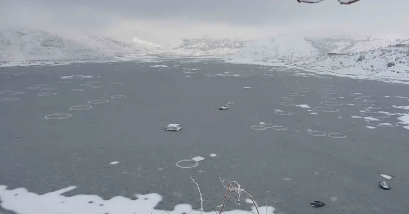 Adıyaman’da Çat Barajı’nın yüzeyi buz tuttu