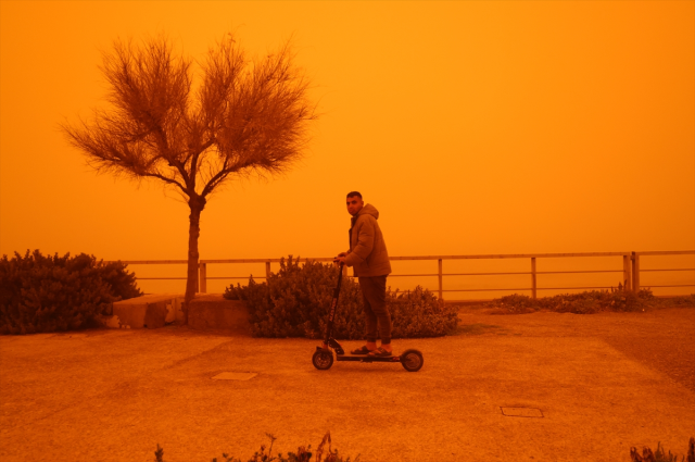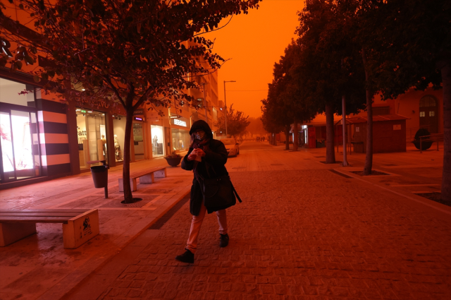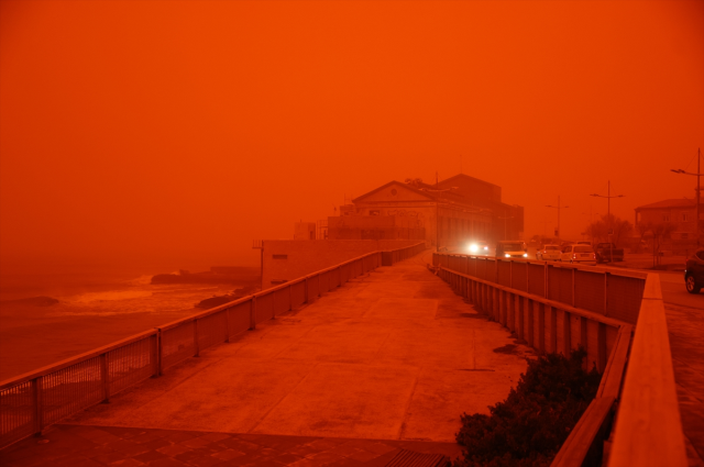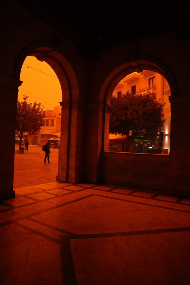 GİRİT ADASI'NDA GÖKYÜZÜ KIRMIZI OLDUGüneyden esen kuvvetli rüzgar Afrika'dan gelen çöl tozunu beraberinde taşıdı. Ülkenin güneyindeki Girit Adası'nda çöl tozu nedeniyle gökyüzü kırmızıya büründü.