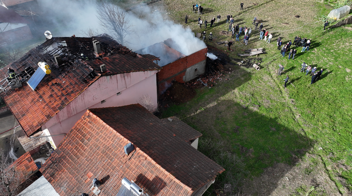 ÇATIDA HASAR MEYDANA GELDİ!Çıkan yangında, ahırdaki samanlar da yanarken evin çatısında hasar meydana geldi. Meydana gelen yangına ilişkin soruşturma başlatıldığı ifade edildi.