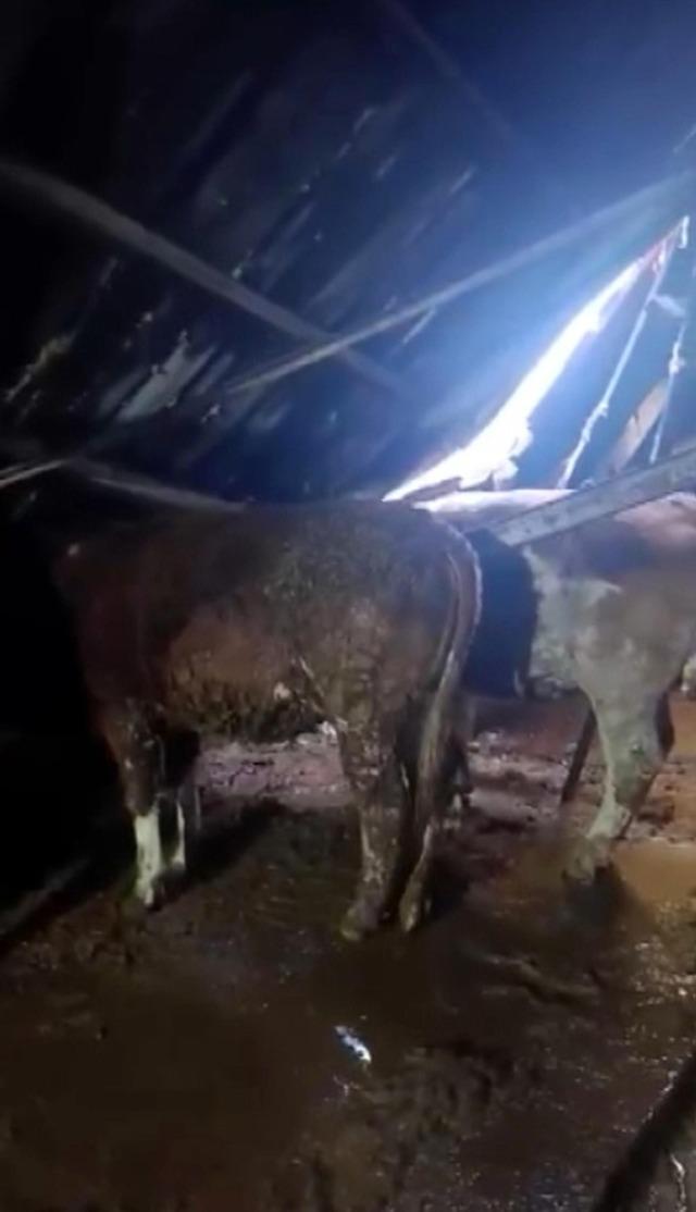 Ahırın çatısı yağan karın ağırlığını taşıyamadı, hayvanlar komşuların yardımıyla kurtarıldı