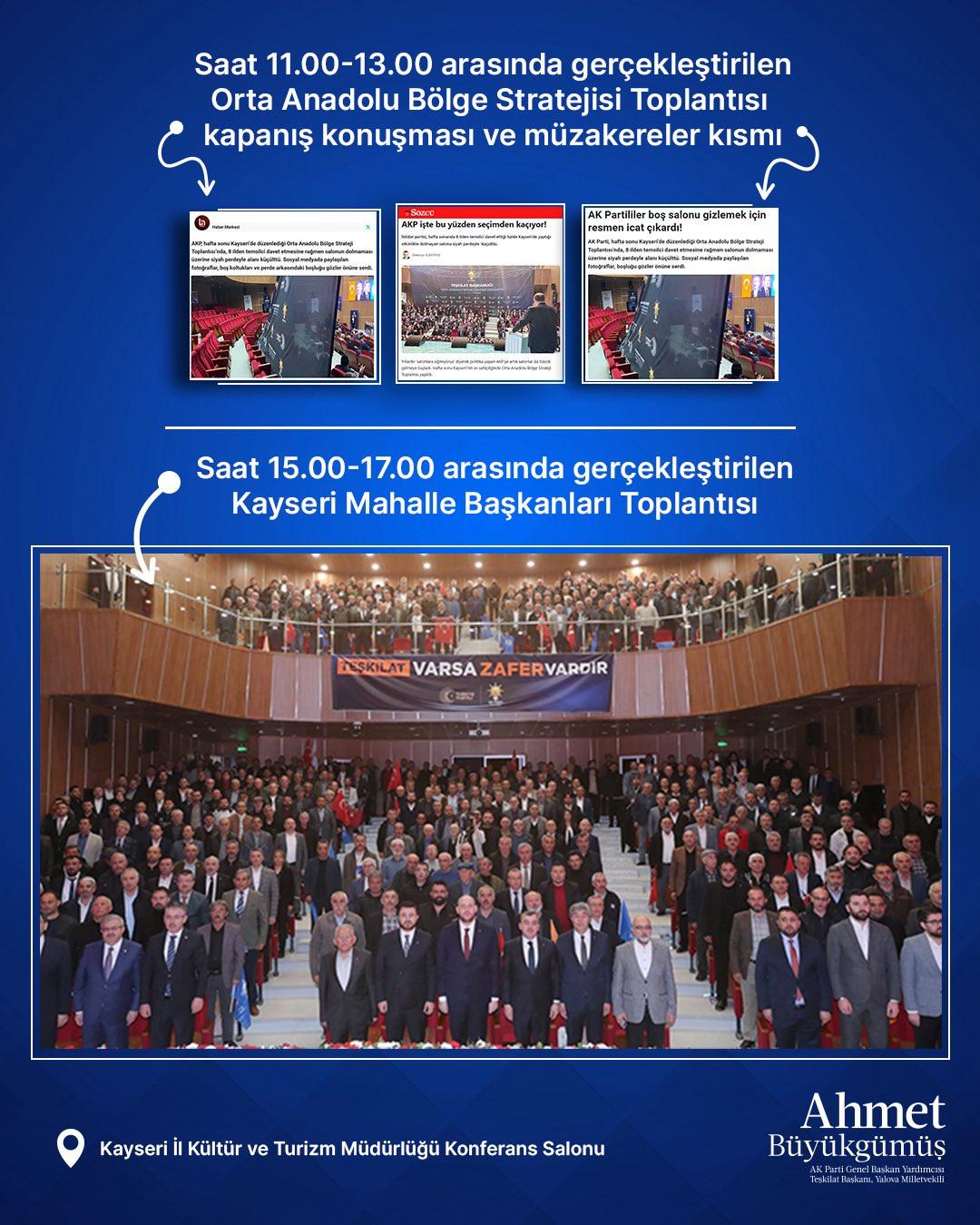 Aynı gün ve aynı salonda daha sonra gerçekleştirilen ve yalnızca Kayseri’deki mahalle başkanlarının katıldığı programın, farklı bir tablo ortaya koyduğunu vurgulayan Büyükgümüş, bu durumun tüm gerçekliği gösterdiğini söyledi.