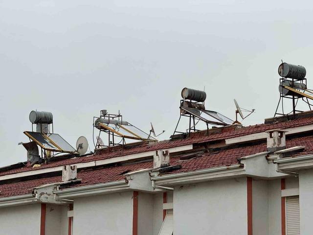 Meteorolojinin uyarısının ardından yağışlı hava dün gece Mersin genelinde etkili oldu. Bazı ilçelerde kuvvetli yağışın yanı sıra fırtına da etkili oldu. Bozyazı ilçesi sınırlarında Akdeniz’de de hortum çıktı. Hortum kıyıdaki Merkez Mahallesi’ne kadar ulaştı. Mahalle sınırlarında kıyıya yakın noktada bir işletmenin önündeki çardağın çatısı çöktü, başka bir cadde de ağaçlar devrildi. Bazı konutların güneş enerjisi depolarını yerinden söken, cam balkonların zarar görmesine neden olan hortum faciasının zararı sabah ortaya çıktı. Çevrede belediye ekipleri temizlik yaparken iş yeri ve evlerinde hasar oluştuğu görüldü. Bölgedeki bir sitede bekçilik yapan Mehmet Güzel, gece hortum nedeniyle doğal bir afet yaşandığını söyledi.