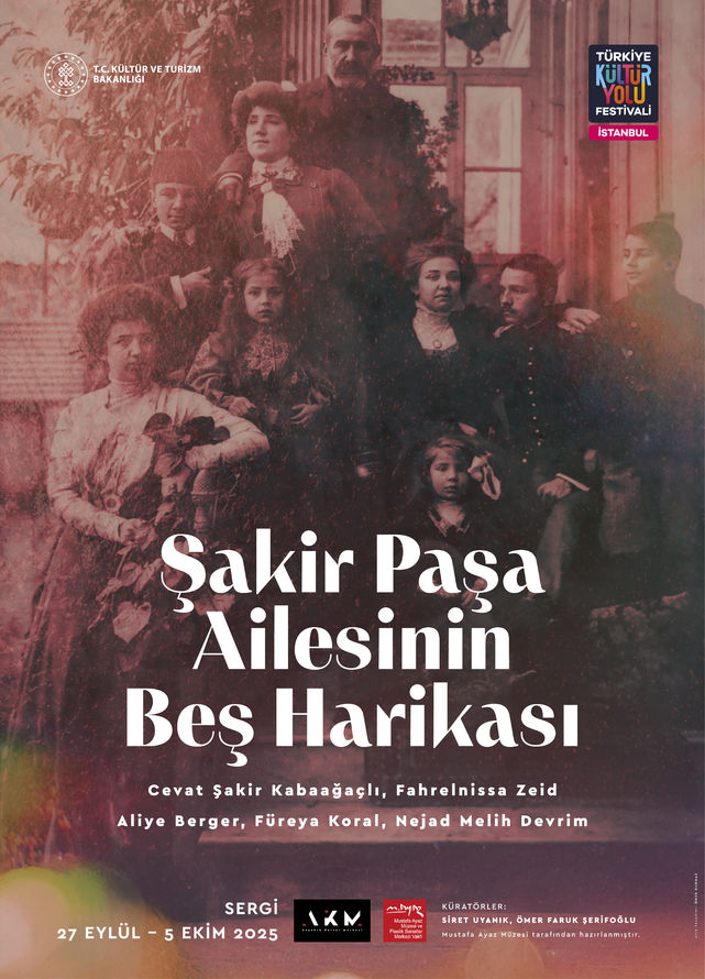 .png Farid Farjad Eserleri Konseri; 7 Aralık saat 20:30’da AKM Tiyatro Salonu’nda. ŞAKİR PAŞA AİLESİNİN BEŞ HARİKASI Türk sanatının en etkileyici ailelerinden biri olan Şakir Paşa ailesinin beş önemli sanatçısının eserlerini bir araya getiren “Şakir Paşa Ailesinin Beş Harikası” sergisi, Atatürk Kültür Merkezi Müzik Platformu’nda sanatseverlerle buluşuyor. Türk modern sanatının gelişim sürecine ışık tutan sergide; edebiyat ile resim arasında kurduğu bağla dikkat çeken ve Halikarnas Balıkçısı adıyla tanınan Cevat Şakir Kabaağaçlı, Türk modern sanatının öncülerinden Fahrelnissa Zeid, Türkiye’de gravür sanatının öncülerinden Aliye Berger, Türk soyut ekspresyonizminin en önemli temsilcilerinden Nejad Melih Devrim ve modern seramik sanatının öncülerinden Füreya Koral’ın eserleri yer alıyor. Resim, gravür ve seramik çalışmalarının yanı sıra sergide; Şakir Paşa ailesine ait eskizler, fotoğraflar ve arşiv belgeleri de sergileniyor. Yaklaşık 100 eserin görülebildiği seçki, disiplinler arası yaklaşımıyla bir ailenin kültürel mirasını kapsamlı bir biçimde sanatseverlere sunuyor.