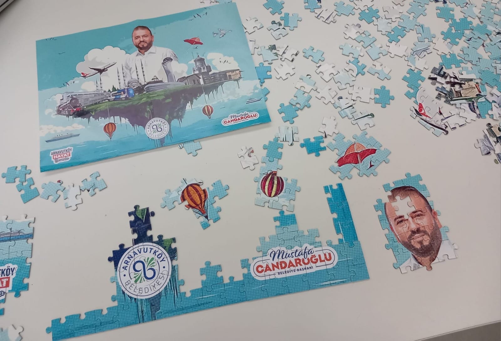 Arnavutköy’de AKP'li belediye başkanı Mustafa Candaroğlu dikkat çeken bir adımı ile gündemde. AKP’li Başkanı Candaroğlu, kendi portresini yapboz formatında hazırlattı. Söz konusu tasarımın ortaya çıkmasıyla birlikte sosyal medyada dikkat çeken yorumlar peş peşe geldi.