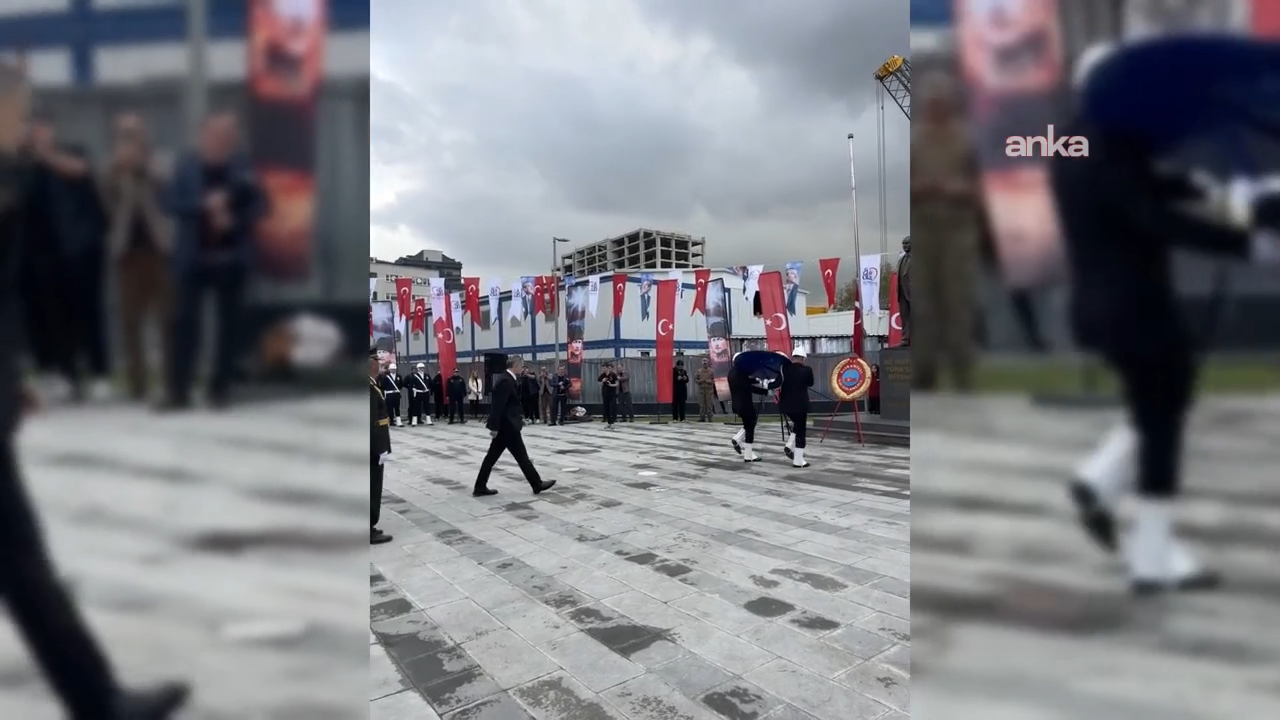 Akın anıta çelenk bırakacağı sırada CHP’li meclis üyeleri ve yurttaşlar, sırtlarını dönerek protesto etti.