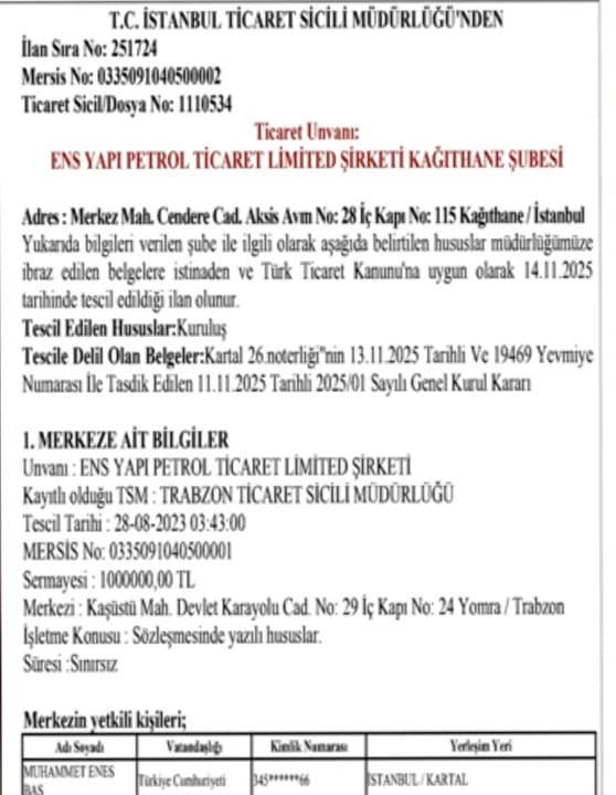 İSRAİL'E BOYKOTU AKP UNUTTUGazeteci Bora Erdin'in Youtube kanalındaki haberine göre; 1 milyon TL sermayeli bu şirket, 14 Kasım 2024’te kuruldu. Şirketin sahibi ise AKP Trabzon İl Başkan Yardımcısı Ali Haydar Baş’ın oğlu Muhammed Enes Baş olarak kayıtlara geçti.